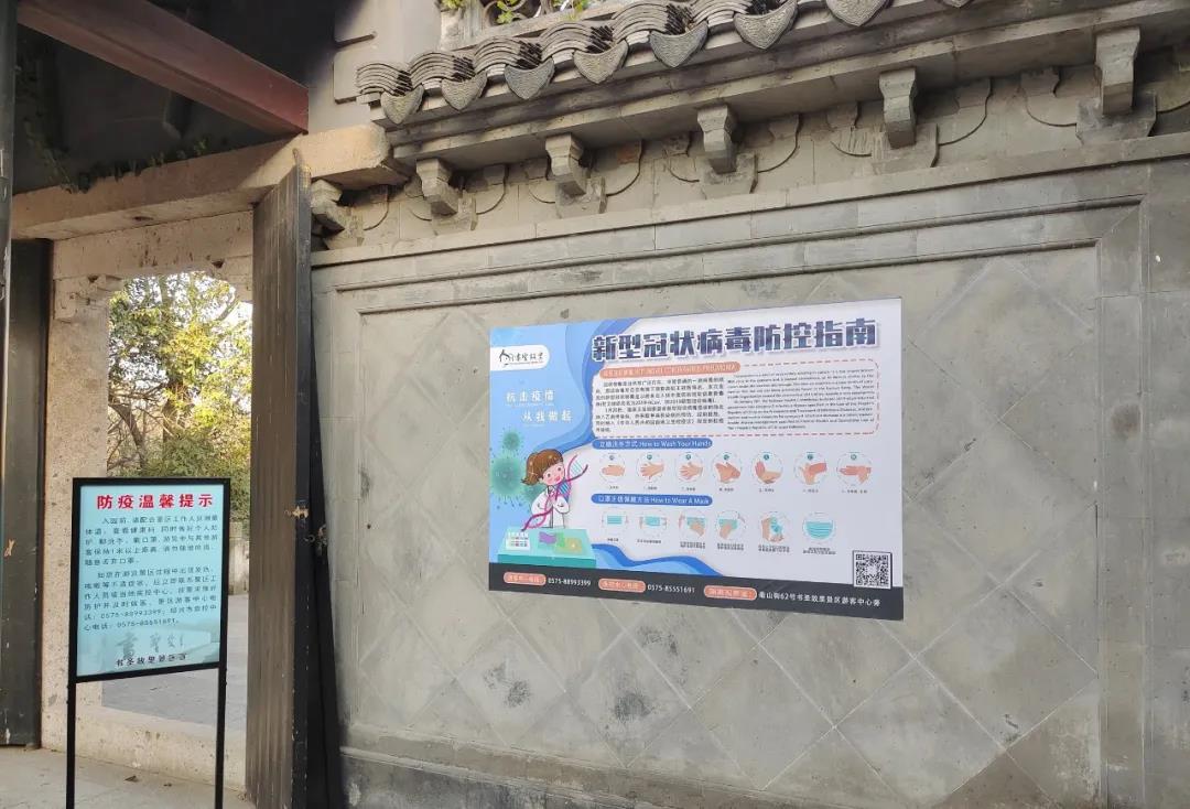 在景區(qū)醒目位置張貼宣傳海報,并用LED屏播放疫情防控的要求、常識和注意事項。在各場館放置中英文防治新冠肺炎的宣傳資料向游客免費發(fā)放。