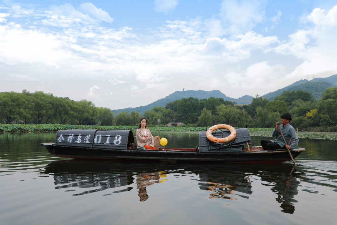 景區(qū)內(nèi)種植了百余株丹桂、銀桂、金桂。 一樹樹的桂花花開正好,其色金黃,其味淡雅,給人留下獨(dú)屬秋日的視覺享受與嗅覺記憶。 擇一葉烏篷,泛舟禹池,微風(fēng)拂面,已頗有幾分涼意。 持傘端坐烏篷船頭,淅瀝點(diǎn)滴,打在傘面、船篷、荷葉上,輕輕重重地織作一曲雨中交響,直將初秋的涼意化作了愜意,為游離的心緒增添一縷禪思。 秋雨朦朧,桂香已至,禹陵桂秋,靜待客至。 |