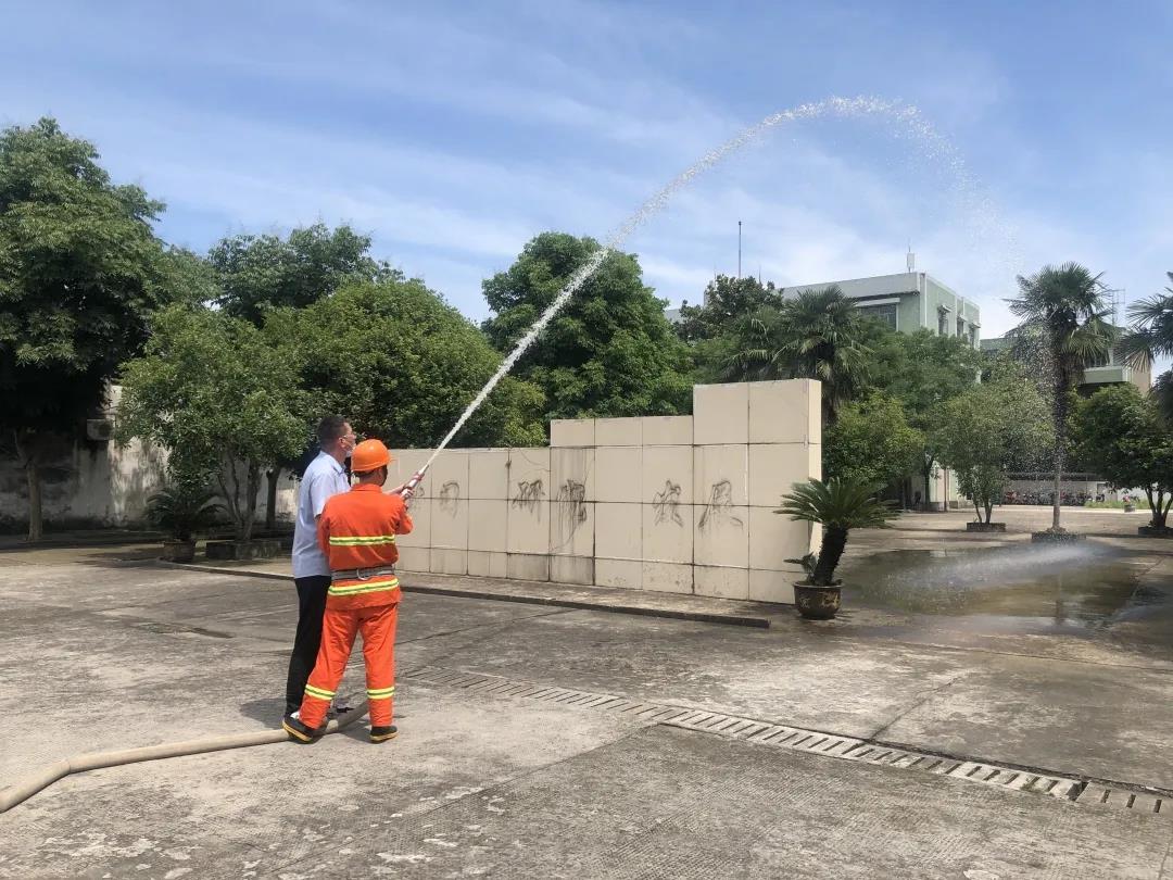 5.如使用的是外置式干粉滅火器,則一只手握住噴嘴,另一只手提起提環(huán),握住提柄,干粉便會從噴嘴噴射出來。