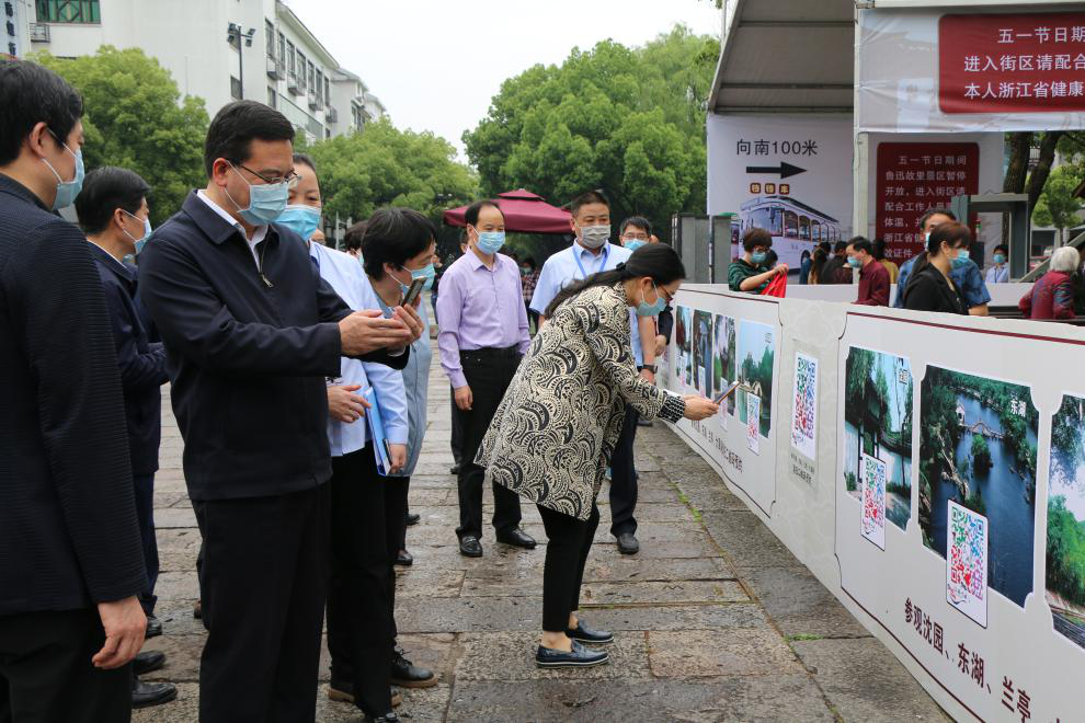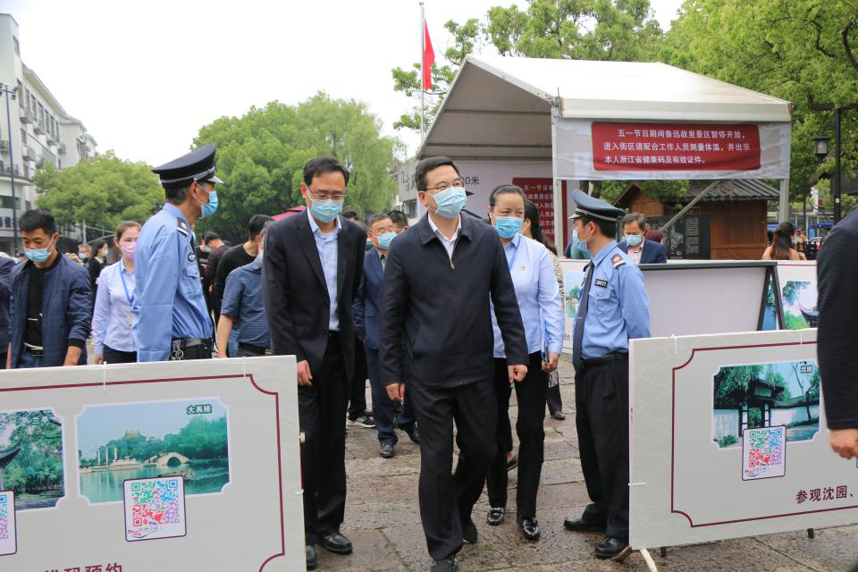 “五一”假期第一天,紹興市委副書(shū)記、市長(zhǎng)盛閱春,副市長(zhǎng)顧濤、市政府秘書(shū)長(zhǎng)王芬祥一行走進(jìn)魯迅故里檢查旅游安全工作。 魯迅故里是紹興的標(biāo)志性景區(qū),9點(diǎn)剛過(guò)已經(jīng)熱鬧起來(lái)。盛閱春向游客揮手致意,看到廣告牌上市文旅集團(tuán)公眾微信號(hào)上參觀其它景點(diǎn)的預(yù)約提醒,當(dāng)場(chǎng)拿出手機(jī)掃碼操作。得知這套系統(tǒng)能分析游客的來(lái)源地,他很欣慰,叮囑景區(qū)繼續(xù)完善大數(shù)據(jù)平臺(tái),精準(zhǔn)做好隱患排查,統(tǒng)籌抓好疫情防控和游客服務(wù)工作。 市衛(wèi)生健康委、文廣旅游局、應(yīng)急管理局、市文旅集團(tuán)等部門主要負(fù)責(zé)人陪同。(周潔)