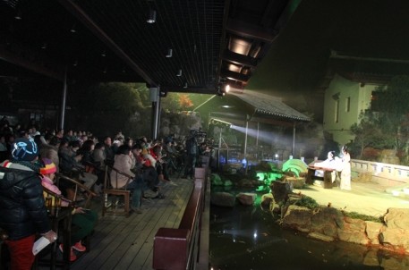 沈園之夜堂會(huì)節(jié)目自2008年開演以來,憑借新穎的文化創(chuàng)意,古今合璧的節(jié)目內(nèi)容,詼諧幽默的說學(xué)逗唱,受到市場(chǎng)追捧,逐漸發(fā)展成為紹興夜游的一個(gè)旅游品牌,填補(bǔ)了紹興城市晚間休閑夜游的空白。2013年,沈園之夜全年接待游客8萬余人次,合計(jì)上演近400場(chǎng),景區(qū)雖在周末及黃金周期間每晚加場(chǎng)加演,卻仍出現(xiàn)一票難求的火爆場(chǎng)面。為滿足市場(chǎng)需求,緩解景區(qū)接待壓力,醞釀中的南苑新劇場(chǎng)于今年10月開土動(dòng)工,沈園景區(qū)在原南苑舞臺(tái)的基礎(chǔ)上,遵循《沈園情》堂會(huì)的節(jié)目風(fēng)格,重新設(shè)計(jì)建造了一個(gè)既古樸又現(xiàn)代的大型劇場(chǎng),此次新投入使用的南苑新劇場(chǎng)面積達(dá)兩千平米 ,共設(shè)有貴賓席和普通觀眾席500座。