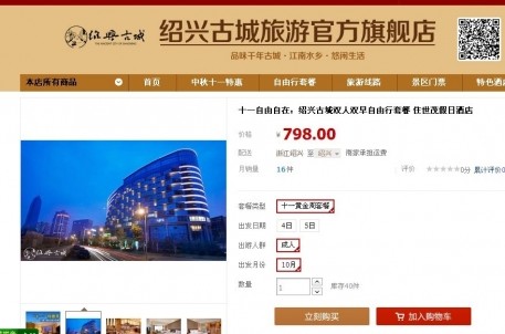 十一國(guó)慶黃金周將至,為了吸引更多游客來(lái)紹興旅游,游客中心電子商務(wù)部特推出了同一系列三款優(yōu)惠套餐來(lái)滿(mǎn)足不同游客的需求。此套餐是以“十一自由自在”為主題的紹興古城雙人雙早自由行套餐,內(nèi)容包含雙人紹興四點(diǎn)聯(lián)票及三大酒店之一的標(biāo)準(zhǔn)間一晚(世茂假日酒店、住稽山賓館、新亞都大酒店)。精美的住宿加優(yōu)惠的門(mén)票希望給游客一種全新的體驗(yàn)。(張艷紅)
