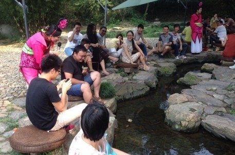 9月14日下午,同程網浙江區(qū)總監(jiān)高元甲率江蘇市場的營銷員前來景區(qū)考察參觀。來賓們此行主要是為提升景區(qū)休閑體驗產品做一個較為全面的市場調研,從而更好的挖掘景區(qū)內涵,開發(fā)更適宜的旅游活動。 來賓們一行認真聆聽景點講解后,還親身參與了仿古的曲水流觴活動。他們不僅效仿古人即興賦詩,還吟誦了古人的經典詩篇,真可謂“古今結合,熱鬧非凡”啊! 紹興蘭亭景區(qū) 徐燕燕