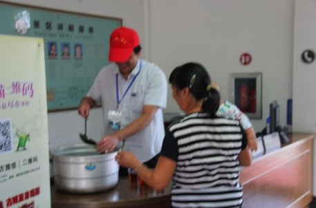 夏日炎炎,為緩解暑熱,東湖景區(qū)特別在游客中心為每一位到達(dá)景區(qū)的游客推出免費(fèi)提供解暑干菜湯贈(zèng)飲的服務(wù),充滿愛(ài)心和人情味的活動(dòng)受到了游客的一致好評(píng)。