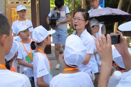 此次活動(dòng)中,我景區(qū)也特地為這支隊(duì)伍安排了一名優(yōu)秀的講解員,全程為老師和孩子們提供免費(fèi)的講解。講解過(guò)程中,看得出孩子們都很興奮,他們都喜歡圍著我們的講解員嘰嘰喳喳地問(wèn)個(gè)不停,我們的講解員都耐心詳細(xì)的為他們一一作答。從大禹陵碑到禹廟大殿,每個(gè)孩子都聽(tīng)得很認(rèn)真,通過(guò)我們講解員細(xì)致的講解,孩子們從中學(xué)到了很多。在這站活動(dòng)快結(jié)束時(shí),還有幾位孩子和家長(zhǎng)接受了記者的采訪,表達(dá)了他們對(duì)這樣的公益活動(dòng)的看法。結(jié)束后,我們看到的是他們那一張張滿(mǎn)載著知識(shí)而歸的臉。