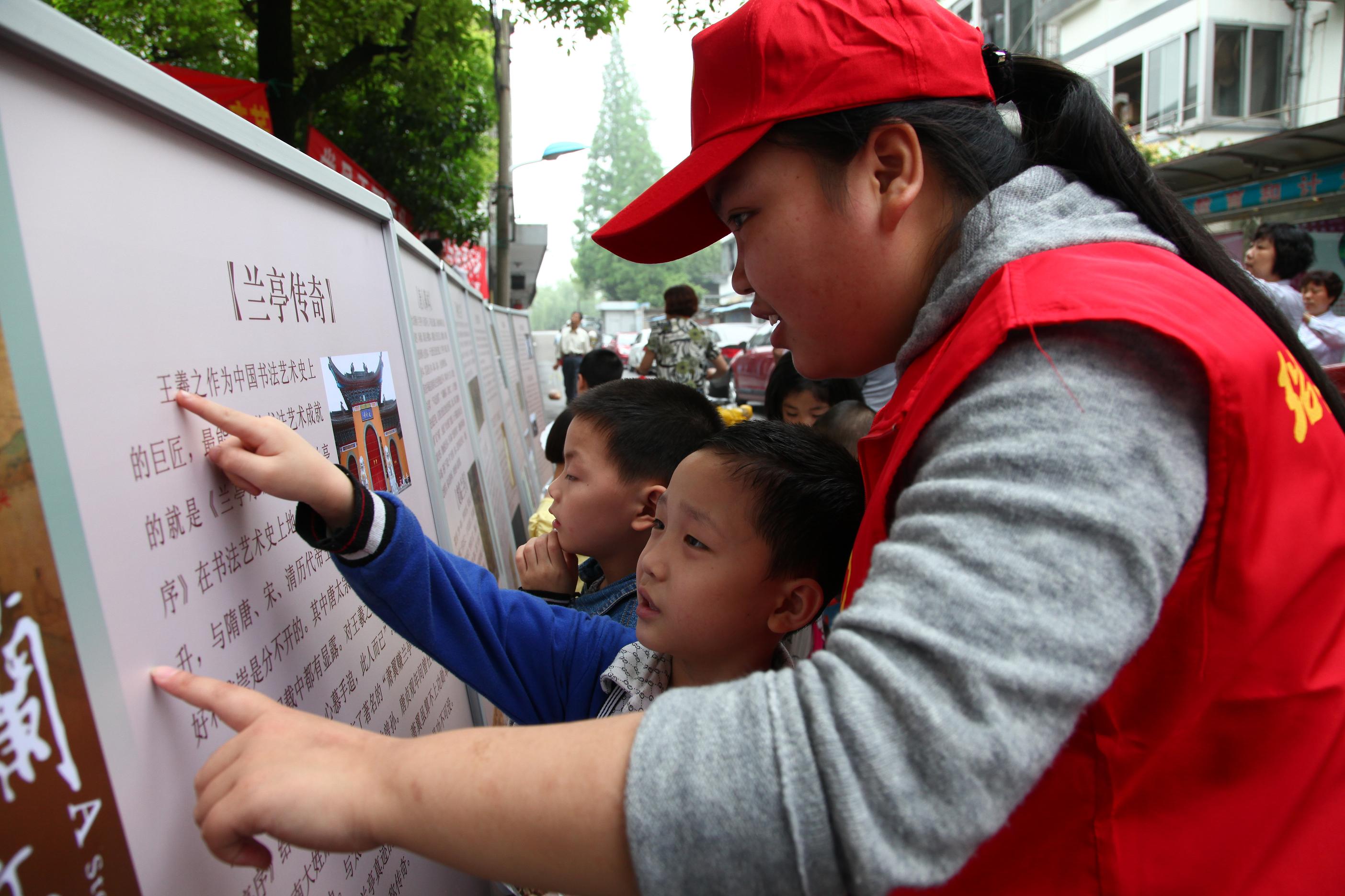 圍繞今年博物館日主題,紹興博物館開展了“博物館志愿者進社區(qū)”的活動,由紹興地區(qū)四所高校(文理學院、越秀外國語學院、紹興職業(yè)技術學院以及浙江農(nóng)業(yè)商貿(mào)職業(yè)學院)的博物館志愿者參加,將《蘭亭的故事》展覽送進北海社區(qū),讓社區(qū)民眾能足不出戶看展覽,同時也宣傳5.18國際博物館日。社區(qū)民眾、小朋友可以在志愿者的引導下,看展覽,寫書法,玩拼圖。