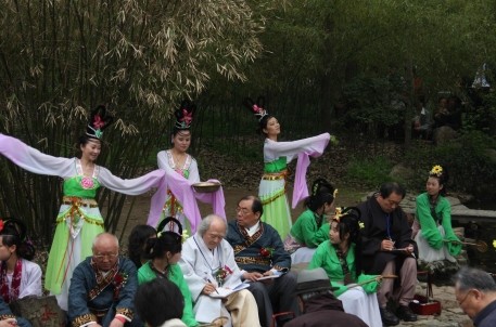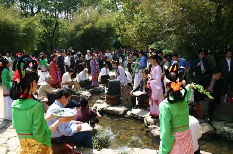 曲水流觴演藝活動是蘭亭景區(qū)的特色活動,經(jīng)過多年的不斷提煉、完善與提升,現(xiàn)在的活動主要由沐手焚香、祭拜神祗,修禊舞韻、吉祥如意,香薰灑身、消災(zāi)祈福,曲水流觴,飲酒賦詩四個環(huán)節(jié)組成。景區(qū)宣教部女職工組成的演藝活動小組不僅每天為海內(nèi)外游客表演和互動,還承接了大量企事業(yè)單位、文化團(tuán)體、旅行團(tuán)隊的專項活動,得到游客朋友、社會各界的廣泛好評,不僅進(jìn)一步樹立了蘭亭雅集——曲水流觴的活動品牌,更進(jìn)一步傳承了書法文化,蘭亭文化,提升了景區(qū)的形象與品位。