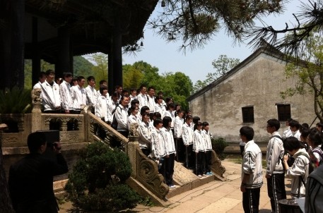 近日,上海位育中學(xué)組織了高二年段的400余名師生來蘭亭舉行宣誓活動,學(xué)習(xí)《蘭亭集序》,感受書法魅力。御碑亭前,20位學(xué)生代表帶領(lǐng)同學(xué)們集體朗誦《蘭亭集序》,抒發(fā)感概,感悟人生,吸引了不少游客駐足觀看。帶隊的老師表示,蘭亭是書法圣地,是風(fēng)水寶地,自幾年前組織了高二學(xué)生到蘭亭舉行宣誓活動后,學(xué)校的升學(xué)率一直非常不錯,校長非常開心,也特別重視,所以每年組織高二年段的學(xué)生來蘭亭宣誓已經(jīng)成了該校的固定活動。