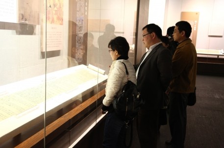 3月28日上午,浙江省博物館副館長(zhǎng)雍泰岳一行來到我館進(jìn)行館際交流。在我館婁烈副館長(zhǎng)的陪同下參觀了我館正在展出的《大越遺珍》《蘭亭的故事》《楊明義百橋圖展》。參觀過程中,雍館長(zhǎng)及隨行的省博各部室主任對(duì)我館的展覽主題和展覽內(nèi)容極為贊賞。