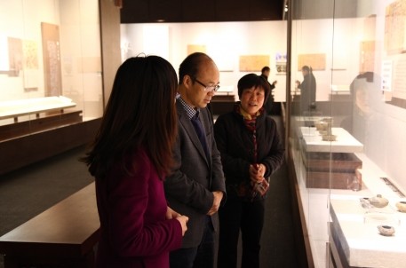 2013年3月26日上午,紹興市委常委、宣傳部部長(zhǎng)尹永杰專(zhuān)程到紹興博物館參觀《蘭亭的故事》展覽。在參觀展覽的過(guò)程中尹部長(zhǎng)對(duì)我館此次展覽給予了高度肯定和極高的贊揚(yáng),他說(shuō)“把文物實(shí)體與展板文字結(jié)合展出,拉近了參觀者與歷史之間的距離感,是一種不錯(cuò)的方式”。文物展覽就是要用這種講故事的形式,讓觀眾有興趣、看得懂。