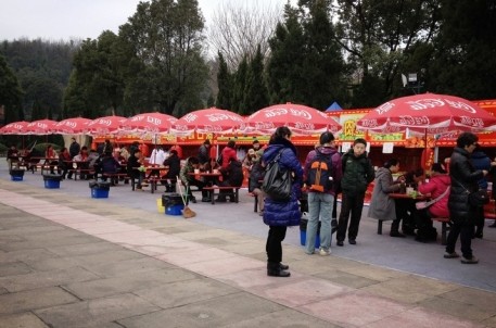 2013年新春佳節(jié),會稽山景區(qū)為游客奉上了以“健身、休閑、祈福、衲祥”為主題的活動大餐。大年初一至初六期間,祭禹廣場熱鬧喜慶,廣場分為三個區(qū),健康祈福區(qū)、趣味運(yùn)動區(qū)和休閑美食區(qū)。“鐘聲納祥”、卡片祈?!岸技耐辛巳藗儩M滿的祝福和來年的愿望。休閑運(yùn)動區(qū),這里既可欣賞絕妙技藝的“斗空竹”民間表演,又可體驗妙趣橫生的童玩游戲,游客們大大小小、老老少少一起抖空竹、滾鐵環(huán)、斗陀螺、玩跳繩、踢足球、投籃球,個個爭先恐后,玩得不亦樂乎!廣場里處處都是歡聲笑語,一片歡樂祥和的氣氛。游玩之余,美食區(qū)飄來的陣陣香味早已讓人饞得垂涎三尺,一家人坐在休息椅上享受著暖暖的太陽,品味著各種美食帶來的味覺享受,其樂融融,別有一番滋味!