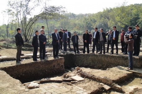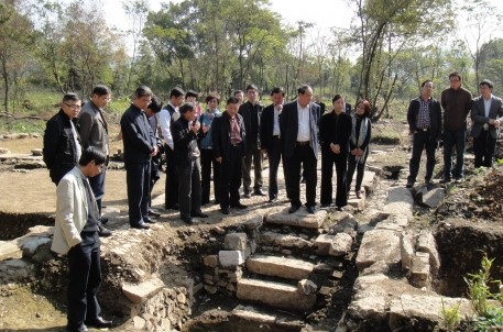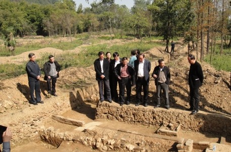 11月13日上午,全國政協(xié)文史和學習委員會副主任周國富一行在市委副書記、市長錢建民,市委副書記王文序,副市長馮建榮,市旅游協(xié)會會長顧秋麟,市旅游集團董事長沈安龍等人的陪同下,來到蘭亭景區(qū)考察天章寺遺址考古挖掘情況。在考古現(xiàn)場,浙江省考古所所長李小寧向領導們詳細介紹了考古挖掘的整體情況,并分析了目前發(fā)現(xiàn)的天章寺遺址的整體布局和不同朝代分段情況等相關內容。