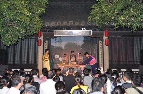 農(nóng)歷八月十五中秋是我國(guó)重要的傳統(tǒng)節(jié)日之一,據(jù)宋代筆記體散記《東京夢(mèng)華錄》記載,中秋是世俗歡愉的節(jié)日。宋代的中秋夜是不眠之夜,夜市通宵營(yíng)業(yè),玩月游人,達(dá)旦不絕。為了重現(xiàn)宋代中秋盛況,弘揚(yáng)傳統(tǒng)文化,賦予中秋節(jié)更多新的內(nèi)涵,在中秋小長(zhǎng)假期間,景區(qū)經(jīng)過(guò)精心編排,在原有堂會(huì)表演的基礎(chǔ)上推出了一場(chǎng)別具特色的中秋祭月儀式。