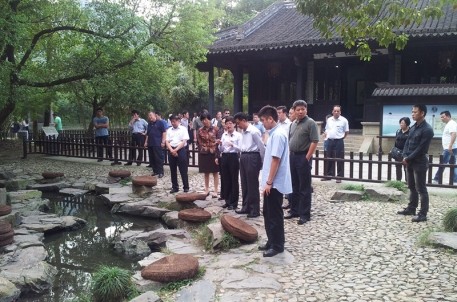 王主席一下車就贊嘆這里環(huán)境宜人,伴著秋風(fēng)習(xí)習(xí)的涼爽氣候,感覺身心愉悅。進(jìn)入到景區(qū)內(nèi),在細(xì)心聽取講解員的講解后,時不時地和講解員探討王羲之的書法以及《蘭亭集序》的有關(guān)內(nèi)容,并在主要景點合影留念。隨后,在曲水流觴處效仿古人飲酒賦詩,對千年的歷史表現(xiàn)出了濃厚的興趣。在離開的時候,王主席還特別表示不虛此行。