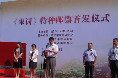 8月31日上午9點,《宋詞》特種郵票首發(fā)式在沈園南門廣場舉行。本次首發(fā)活動由紹興市郵政局主辦,市陸游研究會、沈園景區(qū)和集郵協(xié)會協(xié)辦,邀請了相關部門領導和省市集郵愛好者共襄盛會。