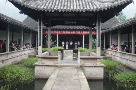 8月23日上午,2012年臺灣大學(xué)生紹興市書法研習(xí)夏令營在蘭亭景區(qū)王右軍祠開營。參加開營儀式的有國臺辦、省臺辦、市臺辦、蘭亭書法學(xué)院領(lǐng)導(dǎo)和來臺灣大學(xué)生、紹興文理學(xué)院大學(xué)生等。在開營儀式上,市臺辦領(lǐng)導(dǎo)致歡迎詞,書法學(xué)院領(lǐng)導(dǎo)授夏令營營旗,學(xué)生代表講話。開營儀式結(jié)束后,臺灣大學(xué)生饒有興趣的參加了景區(qū)為其精心準(zhǔn)備的曲水流觴和臨池十八缸學(xué)書活動。在曲水流觴處,兩岸學(xué)子紛紛飲酒作詩、唱歌,氣氛活躍,充分展示了當(dāng)代大學(xué)生多才多藝的風(fēng)采。在臨池十八缸處,學(xué)生們拿起毛筆金磚習(xí)字,領(lǐng)悟“吾兒練盡三缸水,唯有一點像羲之”的典故內(nèi)涵。