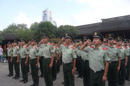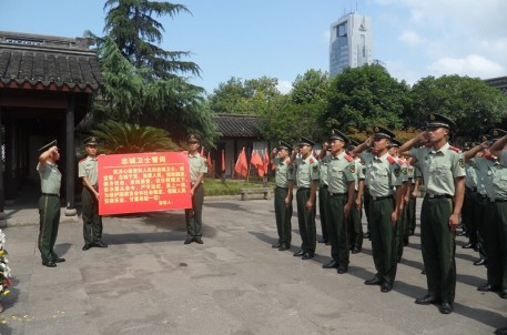 2012年8月1日是建軍85周年,紹興武警支隊組織近60名武警官兵在周恩來紀念廣場舉行重溫忠誠衛(wèi)士宣誓活動。