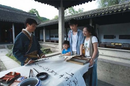 為配合暑期親子游市場(chǎng),進(jìn)一步打響“跟著課本游紹興”的旅游品牌,紹興市旅游集團(tuán)第三部旅游微電影《愛在紹興》將于7月12日溫情亮相。家是一世的風(fēng)情,電影選取了生活在現(xiàn)代都市千萬(wàn)家庭中的一個(gè)縮影,父親張揚(yáng)和母親沈隨心因忙于工作疏于對(duì)孩子張佳的關(guān)心,父子之間一度產(chǎn)生了隔閡。趁著暑假,一家三口一起來(lái)到古城紹興,爸爸媽媽陪著孩子去了魯迅故里,從三味書屋到百草園,吃當(dāng)?shù)氐奶厣朗?,去周恩?lái)祖居瞻仰偉人,還一起去蘭亭看鵝池、流觴亭、御碑亭和沙盤習(xí)字,請(qǐng)書法家在紙扇上題字……在游覽的過(guò)程中,父母和孩子都重新找回了久違的溫情。“有爸爸媽媽在身邊,即使他們不對(duì)我說(shuō)一句話,只是默默微笑著,但我能感覺,這就是愛,這就是幸福?!睆埣鸦厝ブ?,在作文《愛在紹興》中這樣寫到。微電影《愛在紹興》以家庭溫情為線索,緊密融合家喻戶曉的紹興特色旅游產(chǎn)品品牌——“跟著課本紹興”,影片多處出現(xiàn) “三味早讀”“百草園”和“蘭亭”等元素,一定會(huì)讓大家“穿越”到課本中的情境,勾起無(wú)數(shù)美好回憶。