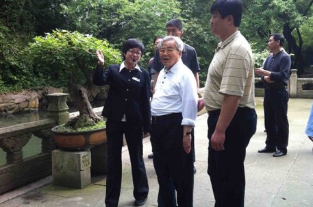 5月21日上午,全國人大常委會原副委員長曹志在省人大常委會辦公廳副巡視員王新華、市人大常委會副主任施淑汝等人陪同下參觀蘭亭。 84歲高齡的曹老因剛參觀了魯迅故里,顯得有點疲倦,但堅持自己行走。曹老對蘭亭的清幽環(huán)境和厚重文化贊賞有加,一路仔細傾聽講解,并不時停下腳步感受竹林幽靜。 最后,在景區(qū)的標志性建筑蘭亭碑亭前,曹老合影留念。