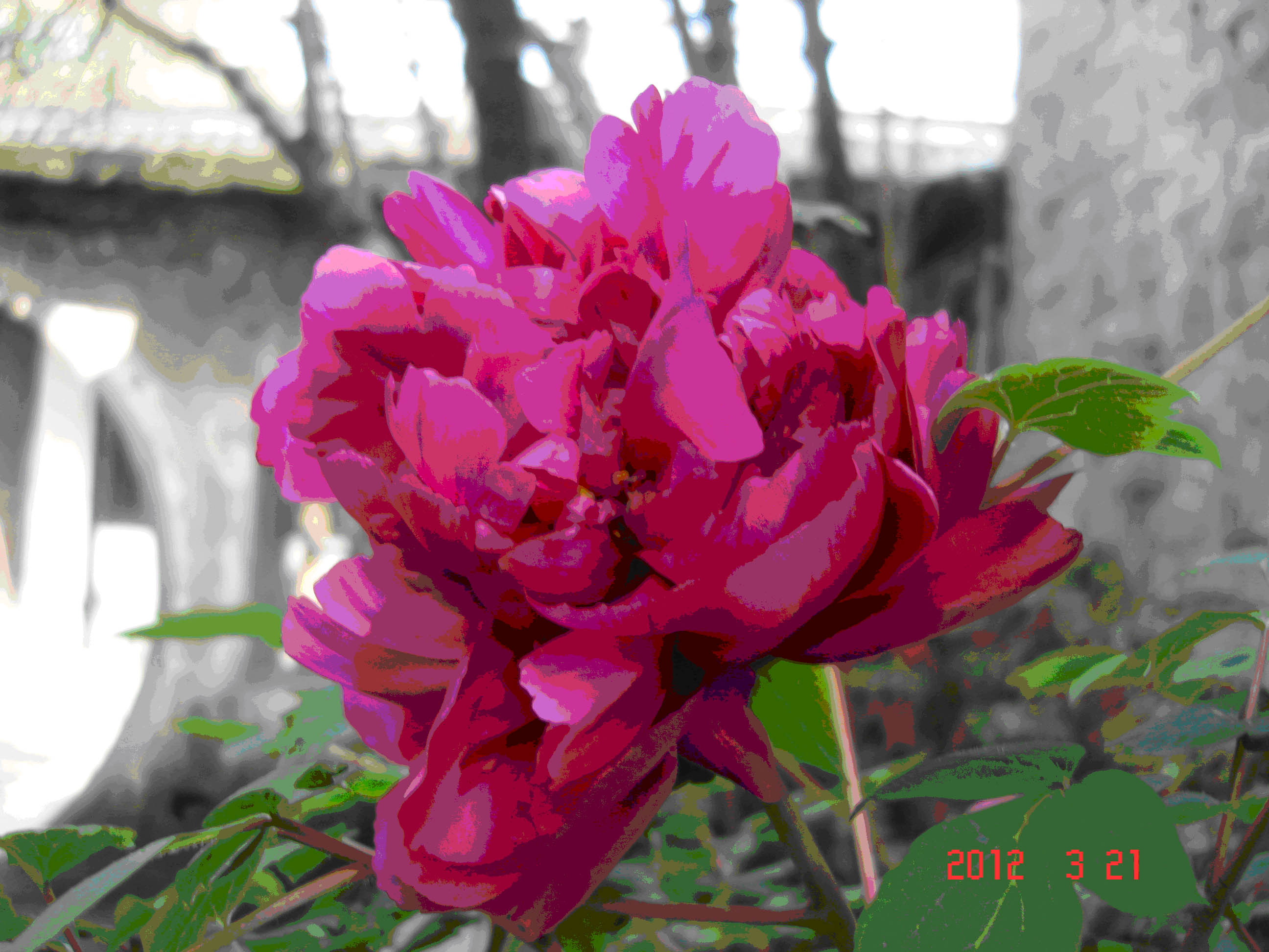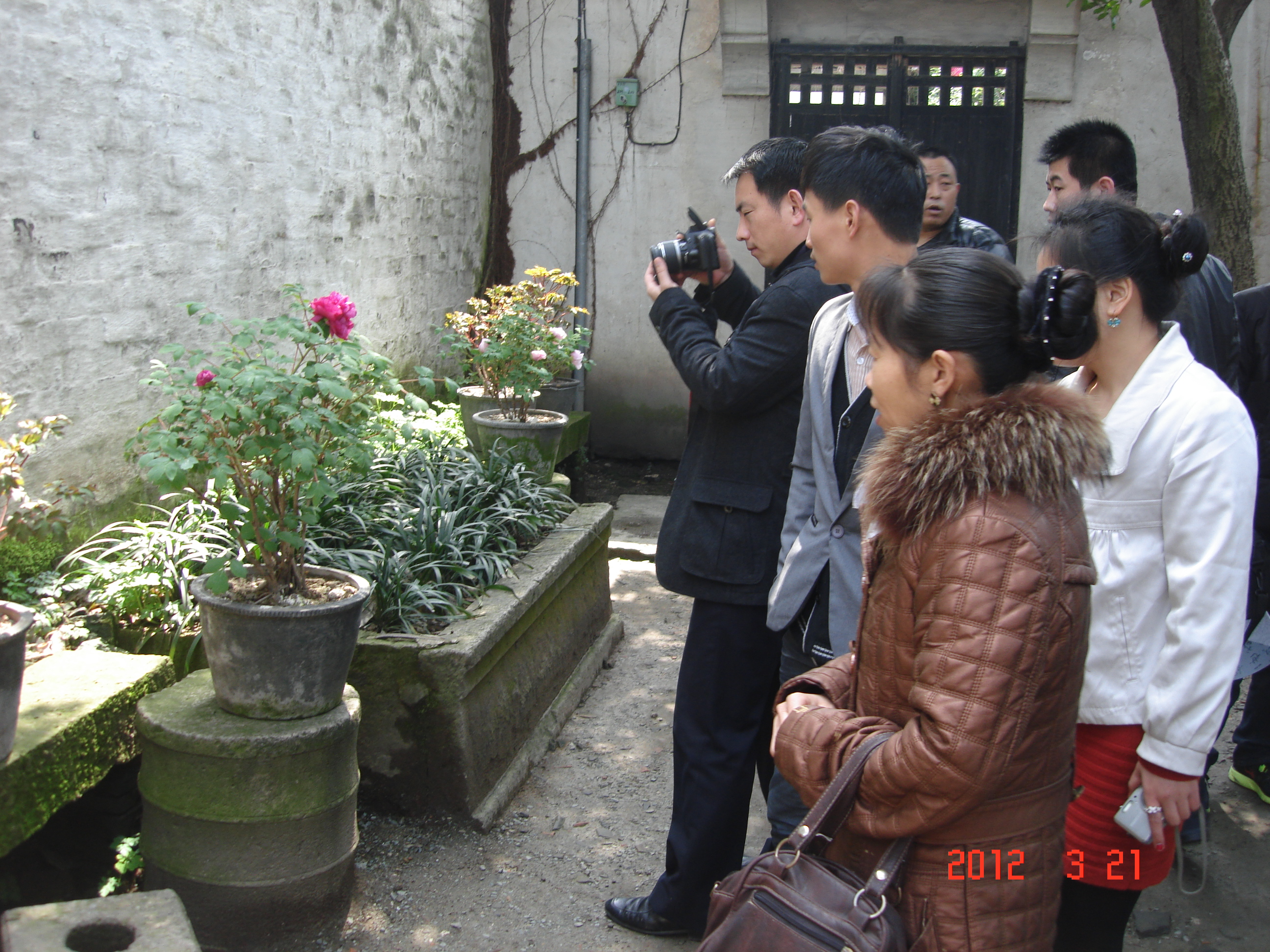 在三味書屋后園,幾盆盛開的牡丹嬌艷欲滴格外引人注目,惹得游人紛紛合影留念,仿佛讓人聞到了春天的氣息。