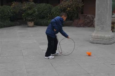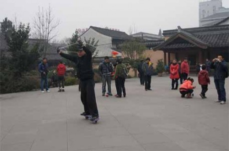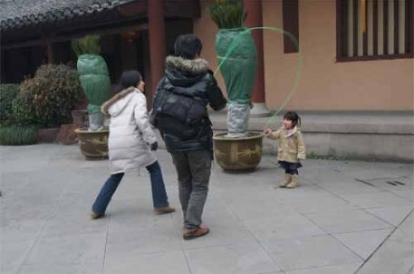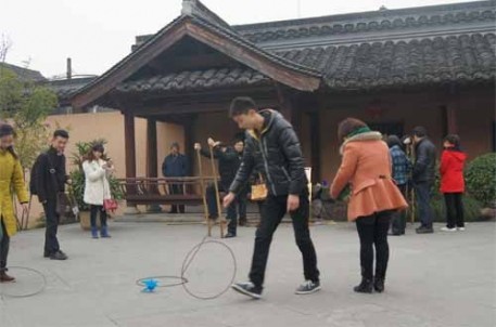 元旦小假期期間,傳統(tǒng)的民間活動——童玩比賽在沈園務(wù)觀堂廣場如火如荼的展開,吸引了眾多的游客參與。踩高蹺、踢毽子、滾鐵圈、抽陀螺……男女老少玩的不亦樂乎,在重溫童年的樂趣的同時,感受節(jié)日歡樂、喜慶的氛圍,活動深受游客的歡迎。