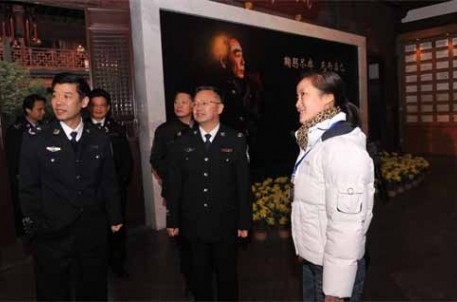 2011年12月12日下午,省委常委、公安廳長劉力偉一行十余人,在市長錢建民、市公安局局長王海仁等領(lǐng)導(dǎo)的陪同下,到周恩來紀念館參觀視察。(名人故居 壽巧燕)