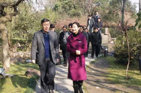 12月10日上午,北京故宮博物院院長鄭欣淼一行5人,在紹興市政府副市長馮建榮等領導的陪同下視察沈園。雖是故地重游,但鄭院長仍是興致勃勃。視察中,鄭院長仔細聽取了講解員地介紹,還不時地與講解員一起對于沈園的相關問題進行交流。在參觀了陸游紀念館之后,鄭院長對陸游詩詞、書法提出了自己獨特的見解,并對于沈園的發(fā)展寄予了殷切的希望。視察結(jié)束后,鄭院長還親切地與工作人員在八詠樓前拍照留念。