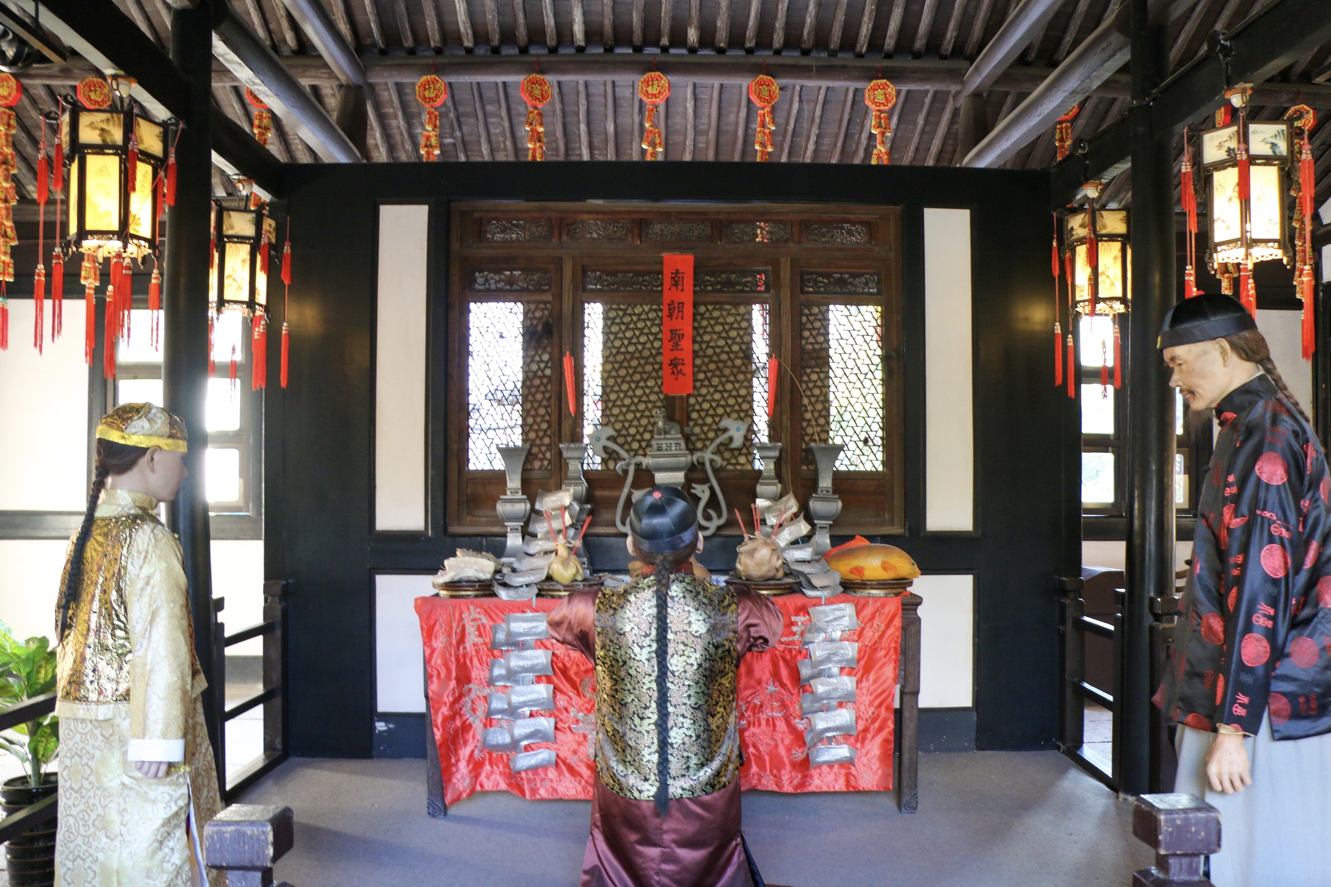 “魯迅筆下風(fēng)情園”,總占地面積約3000平方米,依次設(shè)立“紹俗祝?!?、“越俗漫話”、“迎神賽會(huì)”、“男婚女嫁”等幾個(gè)主題陳列館。