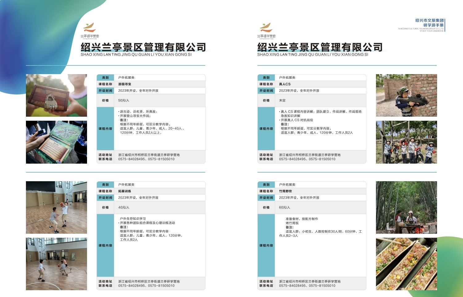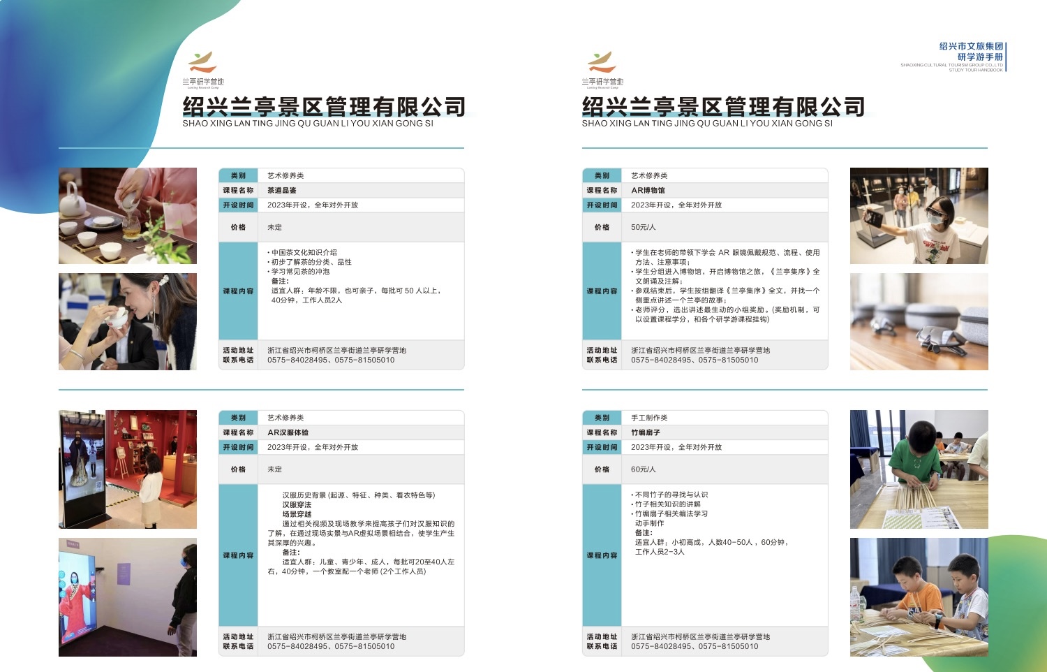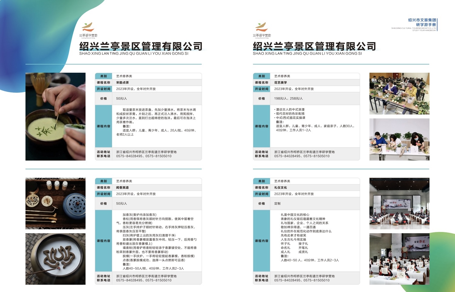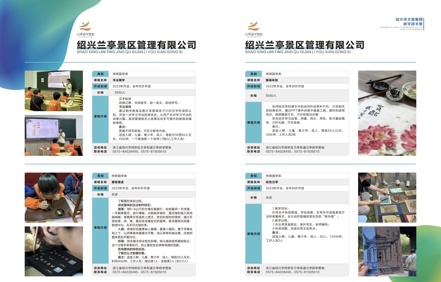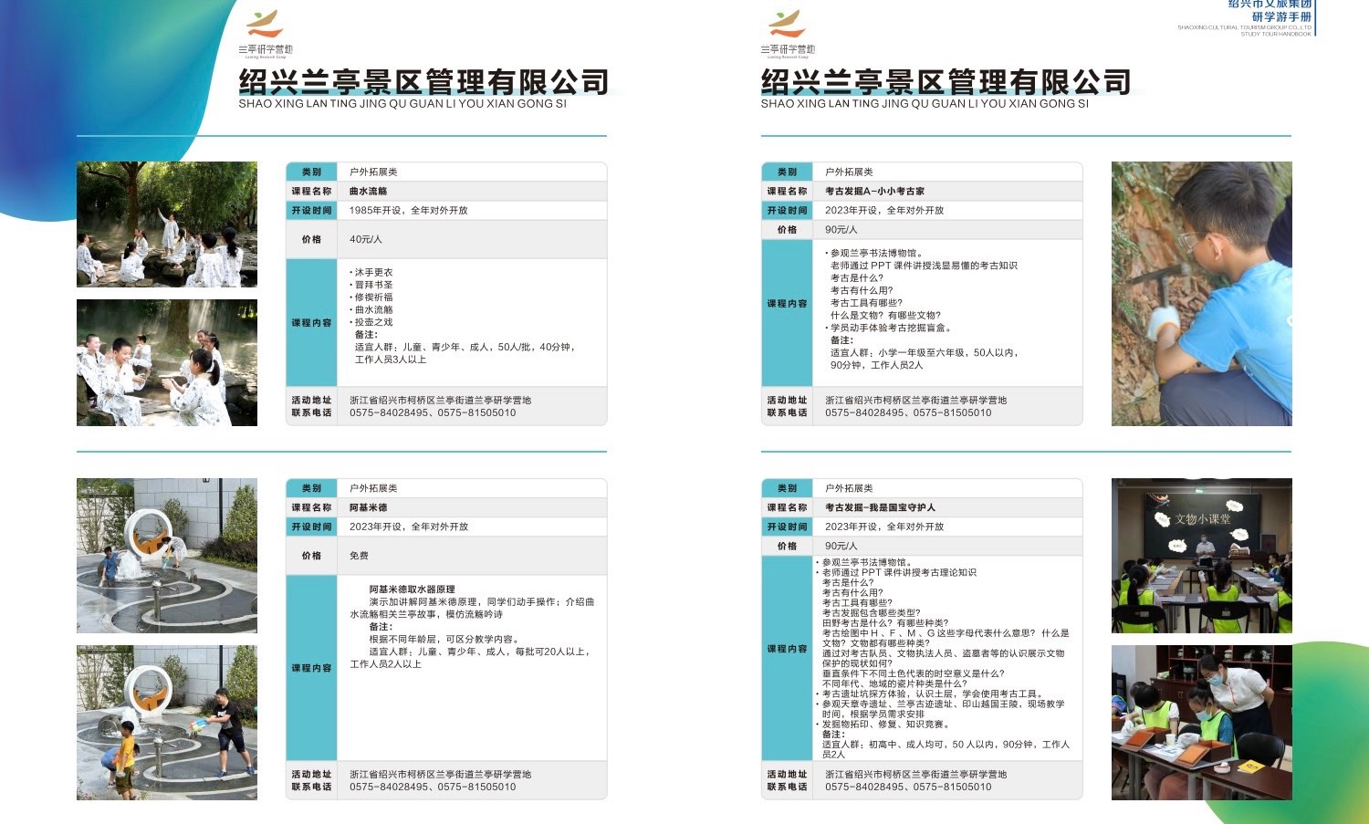 蘭亭研學(xué)依托蘭亭研學(xué)營(yíng)地以及蘭亭景區(qū)的自然資源,形成全年齡段、全覆蓋和1+X的課程模式。