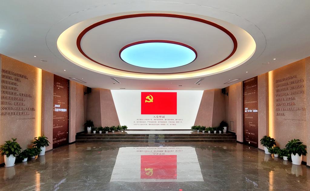 宣誓廳是一個(gè)莊嚴(yán)的場(chǎng)所,在這里可以重溫入黨誓詞以及團(tuán)、少先隊(duì)員。四周是不同時(shí)期的入黨誓詞,體現(xiàn)了中國(guó)共產(chǎn)黨在不同時(shí)期更改誓詞的內(nèi)容,更加符合當(dāng)時(shí)的時(shí)代背景。