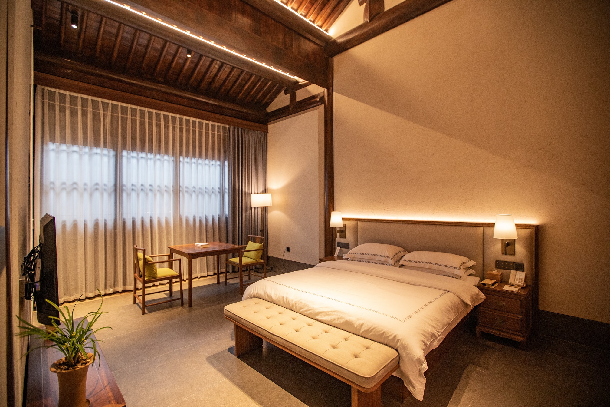 青藤別苑由紹興特色臺門建筑改建而成,客房古樸清雅,空間線條干練,以低調(diào)設(shè)計表達(dá)空間的本質(zhì)。