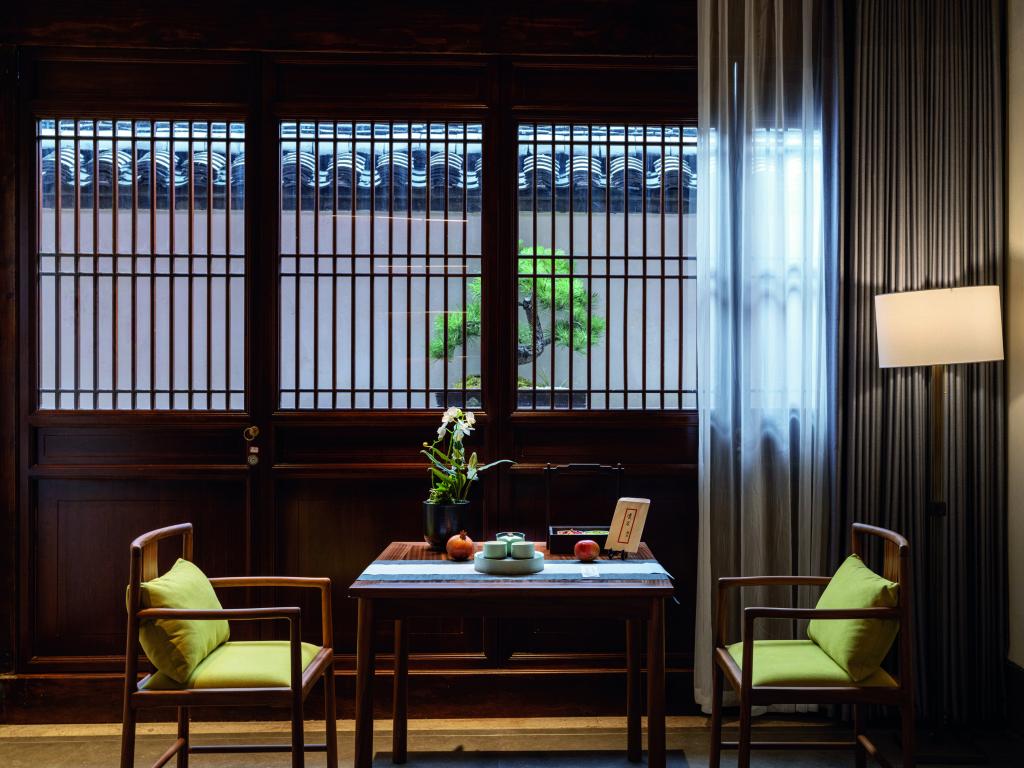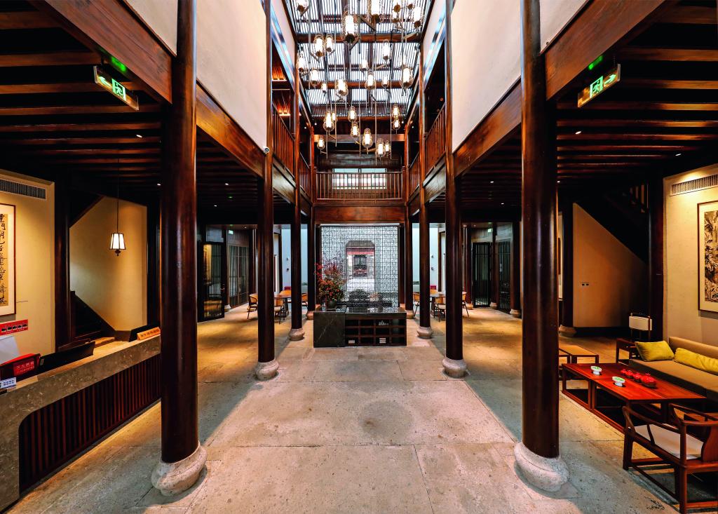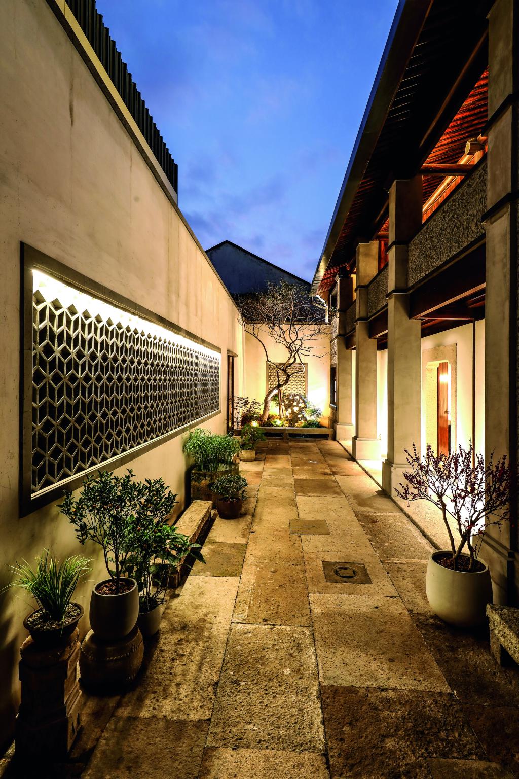 青藤別苑位于紹興市越城區(qū)后觀巷35號(hào)(徐渭藝術(shù)館西側(cè)),是具有徐渭文化特色的主題酒店。整體建筑面積780平方米,分上下兩層,主要經(jīng)營(yíng)住宿服務(wù)。酒店設(shè)有八個(gè)不同類(lèi)型的房間,套房主題分別為渡海、眠松、行吟、行舟、對(duì)弈、扶醉、漁者、菊石、觀棋。入住其間,隨處可見(jiàn)文人筆下紹興人文風(fēng)物的靈秀。酒店還采用 “奪得千峰翠色來(lái)” 的越窯青色為局部墻體上色,營(yíng)造出溫馨放松的居住環(huán)境??头抗艠闱逖牛删毜目臻g線(xiàn)條、高級(jí)的材質(zhì)以及藝術(shù)化的裝飾,都以低調(diào)的設(shè)計(jì)展現(xiàn)著空間的本質(zhì),讓賓客在休憩之余能感受到古今韻味的自然連接,筆墨流轉(zhuǎn)間彰顯臺(tái)門(mén)禮序,簡(jiǎn)筆勾勒中續(xù)寫(xiě)江南古韻。