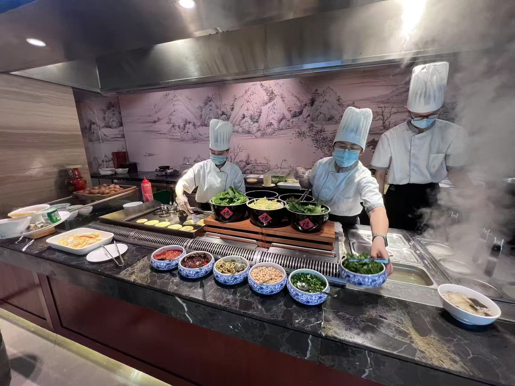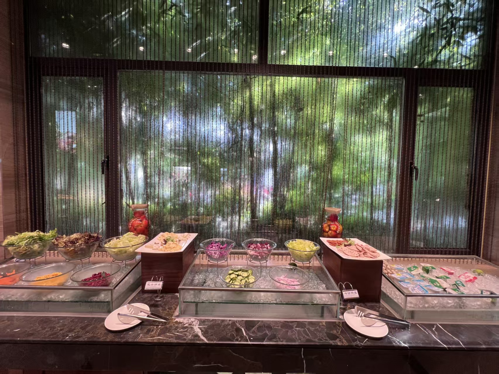 紹興飯店自助早餐廳位于紹興飯店北門(mén)知遇樓一樓,江南庭院風(fēng)格,靠窗座位可直觀感受小橋流水環(huán)繞。餐廳可同時(shí)容納近150人用餐,涵蓋了中式、常規(guī)西式及本地傳統(tǒng)小吃近百余個(gè)品種,最受青睞的小食有:梅干菜燒餅、蘿卜絲餅、生煎包及各種蒸點(diǎn),如小籠包、狀元糕等。品種豐富、食材新鮮、手作出品,可滿足不同顧客的口味?。江南園林式環(huán)境配上地道紹興美食,是飯店早餐的核心競(jìng)爭(zhēng)力,飯店的詩(shī)畫(huà)江南味和餐廳的人間煙火氣,收到住客和游客的一致好評(píng)。