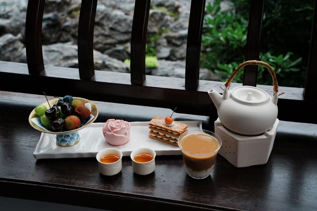 岱咖啡位于紹興飯店的快園故址,承襲明末才子張岱的生活美學(xué)精髓,以手沖咖啡復(fù)刻蘭雪匠心。咖啡廳設(shè)計(jì)雅致,氛圍寧靜,拿鐵拉花漾著崇禎五年的月光,慢節(jié)奏揉碎時(shí)空褶皺。晚明生活美學(xué)大家——張岱,少閱三萬卷,厭八股而以性情聞名;創(chuàng)蘭雪茶風(fēng)靡江南,似17世紀(jì)"初代網(wǎng)紅";國(guó)破后隱于快園,著二十余部典籍,淬出"繁華看破素心不改"的哲思。從張岱的蘭雪茶到今日的岱咖啡,從陶庵筆墨到杯中漣漪,素瓷觀咖啡如雪落湖心,便是對(duì)"忠于自己"最溫柔的踐行。