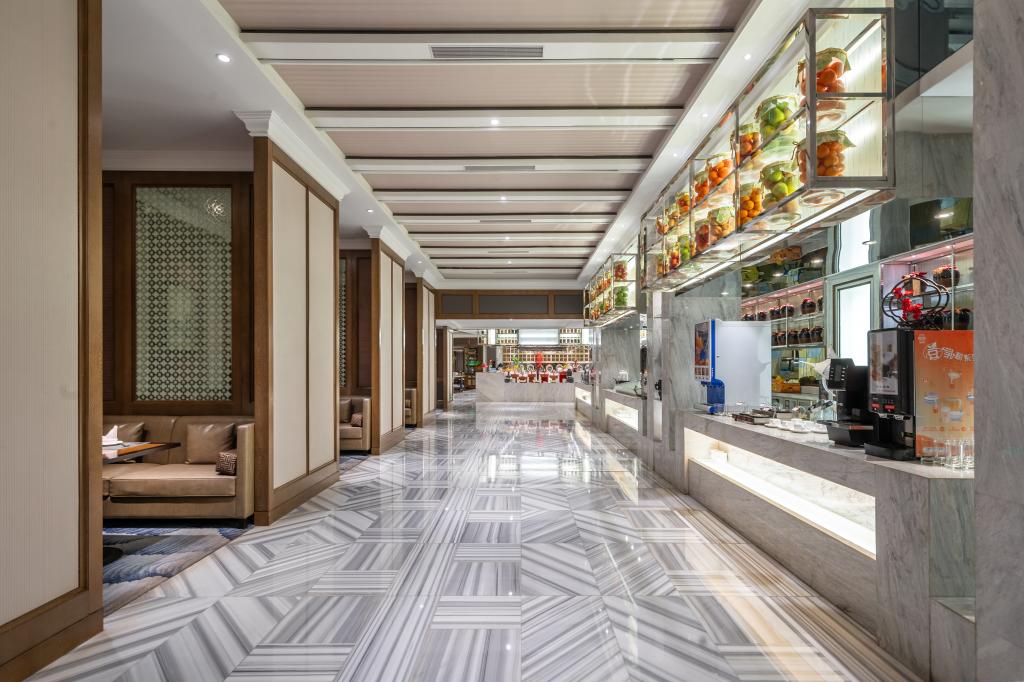國際大酒店位于府山西路100號,酒店恪守“賓客是我們的朋友”的信條,堅持為賓客提供尊貴的禮遇和殷情的服務,思蕓自助早餐廳,中西美食菜品豐盛,精致可口。