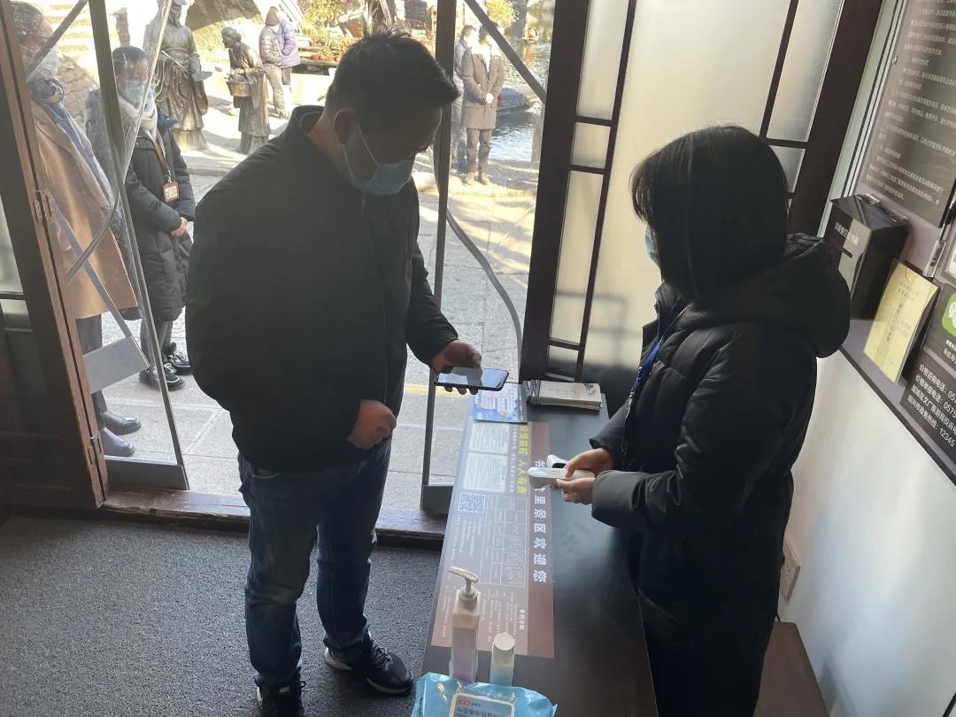 遇到體溫或健康碼異常的游客,由工作人員迅速引領(lǐng)至隔離室靜坐。隨后,對體溫異常游客進(jìn)行復(fù)測,并記錄游客、同行人員信息及出行方式。待體溫正常后,按照流程入園參觀。如果體溫持續(xù)異常,迅速撥打110及時上報領(lǐng)導(dǎo)。