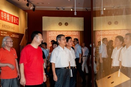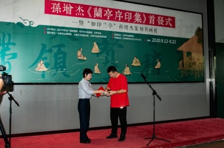 12日,由紹興市文化廣電旅游局、紹興市文化旅游集團(tuán)有限公司、蘭亭書會(huì)主辦,蘭亭書法博物館、上虞區(qū)書法家協(xié)會(huì)、蘭亭書會(huì)蘇州研究院承辦的孫增杰《蘭亭序印集》首發(fā)式暨“如印蘭亭”孫增杰篆刻書畫展在蘭亭書法博物館如期開展。
