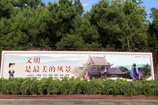 景區(qū)著力強(qiáng)化社會(huì)主義核心價(jià)值觀、文明旅游宣傳,在游客中心、大入口、景區(qū)內(nèi),通過噴繪廣告、宣傳海報(bào)、LED電子屏等多種形式,引導(dǎo)廣大游客融入文明城市創(chuàng)建的氛圍中。