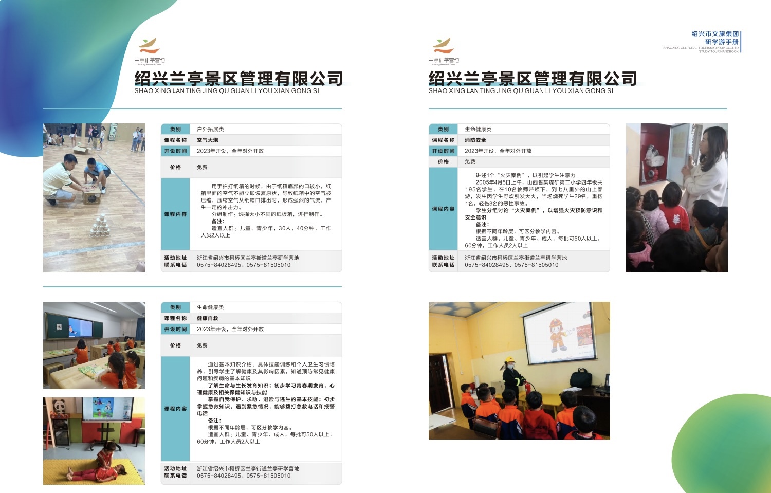 蘭亭研學(xué)依托蘭亭研學(xué)營(yíng)地以及蘭亭景區(qū)的自然資源,形成全年齡段、全覆蓋和1+X的課程模式。