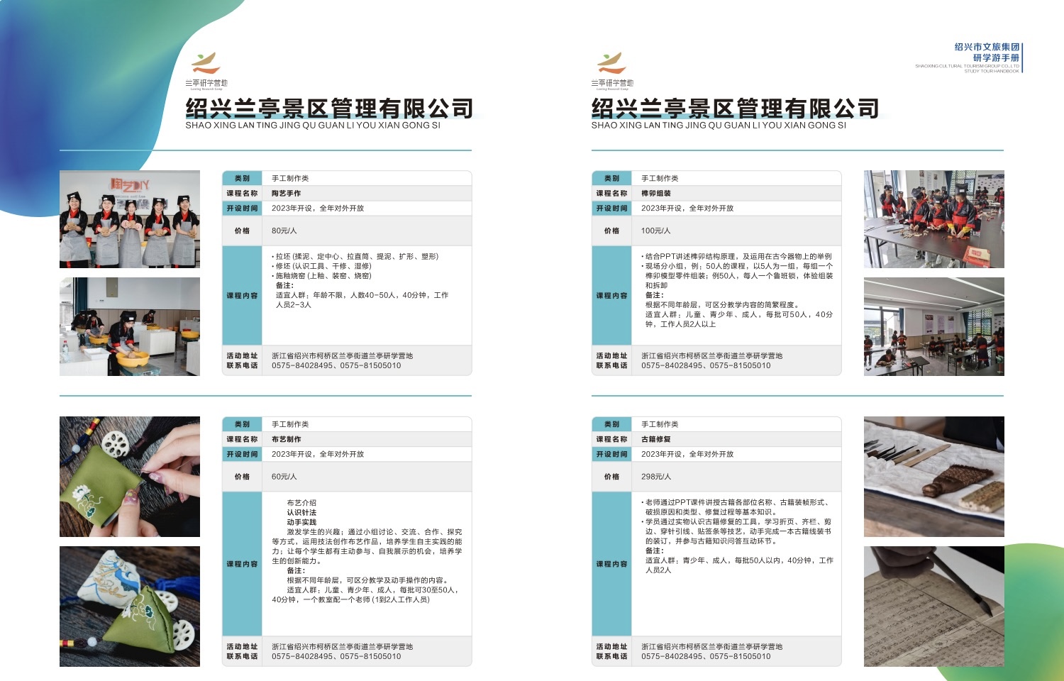 ì1+X模式,1為參觀景區(qū),X為自選課程,其中扇面描紅、石刻拓碑、曲水流觴、活字印刷、木刻版畫、臨摹蘭亭序、手工課堂成為最受學(xué)生歡迎的主題課程。