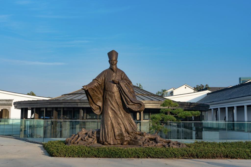 王陽(yáng)明雕像位于王陽(yáng)明紀(jì)念館前,高4.5米,由中央美術(shù)學(xué)院教授、中央美術(shù)學(xué)院理事會(huì)副理事長(zhǎng)孫偉教授團(tuán)隊(duì)創(chuàng)作。該尊雕像呈現(xiàn)的是王陽(yáng)明先生講學(xué)的狀態(tài),展現(xiàn)了陽(yáng)明先生作為一代宗師的莊重內(nèi)斂,又傳遞出其誨人不倦的親和氣質(zhì),完美呈現(xiàn)了這位心學(xué)大師“知行合一”的精神境界。