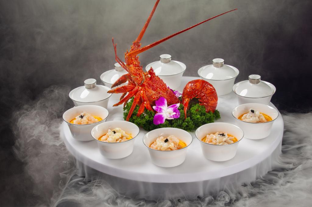 府山隱以粵菜的精致烹飪方式與越菜的咸鮮風(fēng)味結(jié)合,特色菜品有小肥鵝吞鮑魚,刺身東星斑、沙漠尋寶、龍騰四海、烤乳鴿、官燕蛋撻等。小肥鵝吞鮑魚刺身東星斑廣式蒸東星斑黑松露石鍋花膠龍騰四海沙漠尋