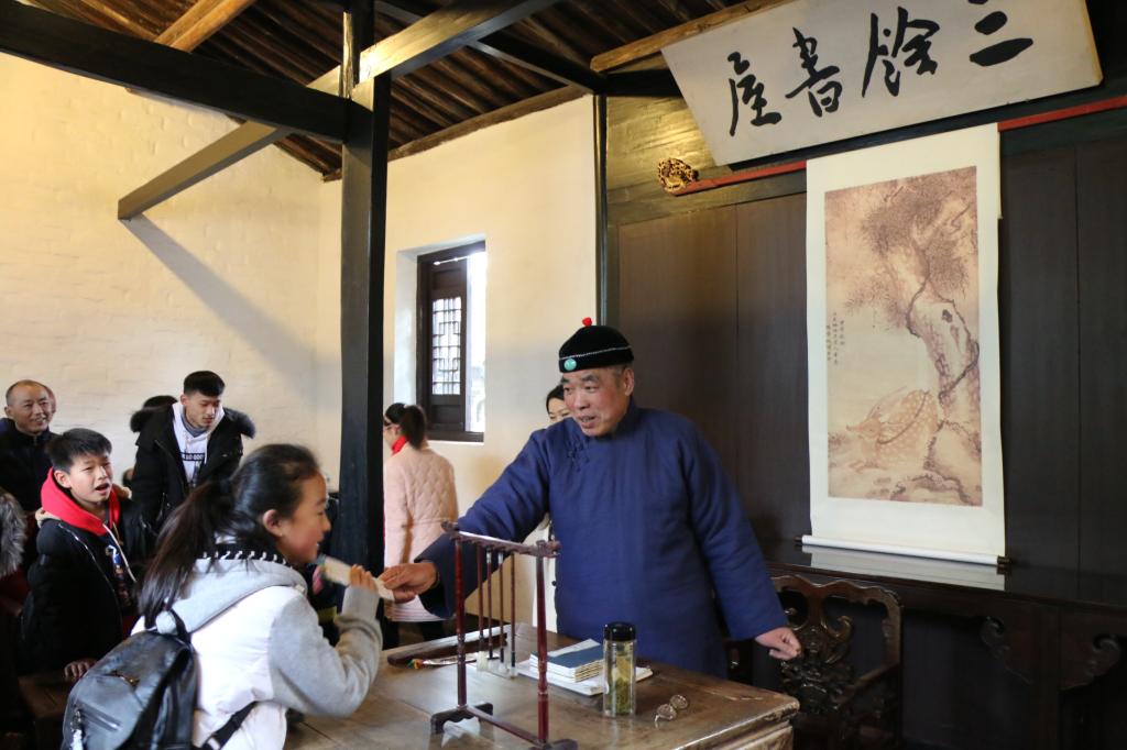 三味書屋旁邊的“三余書屋”內(nèi)設(shè)有一個舊時的私塾演示活動,游客可以參與其中,與老先生一起念念“三字經(jīng)”,對對課,親身感受魯迅當年讀書的意境和紹興舊時的私塾文化?;顒訒r間:上午 9:30——10::00 下午 14:30——15:0010:30——11:00 15:30——16:00活動地點:魯迅故里三余書屋