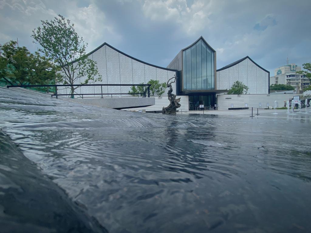 徐渭藝術(shù)館正南方為青藤廣場,廣場用地面積2290平方米,設(shè)計(jì)借鑒徐渭《山水圖》的墨韻筆法,如一幅水墨畫,抽象出黑山白水的生動(dòng)肌理,一頭是山,一頭是水